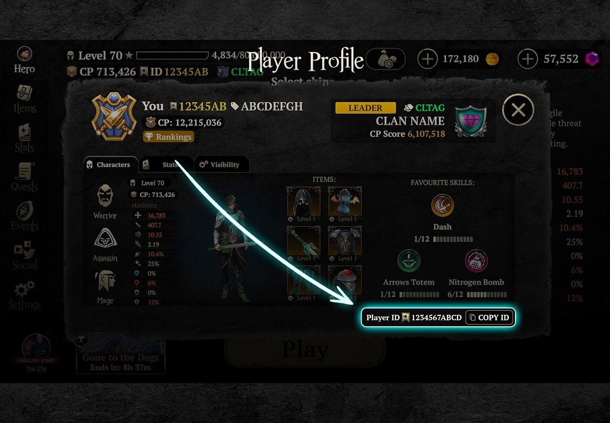 You’ll log in using one of three methods: via Evil Lands app on a mobile device with the Web Shop login button, by entering your Player ID (found in the main menu or your Player Profile — both located in the bottom-right corner), or by scanning a QR code using a mobile device with Evil Lands installed and your account logged in. Once you complete a purchase, items are sent directly to your account — usually within minutes. If they don’t appear right away, simply restart the game to refresh your inventory.